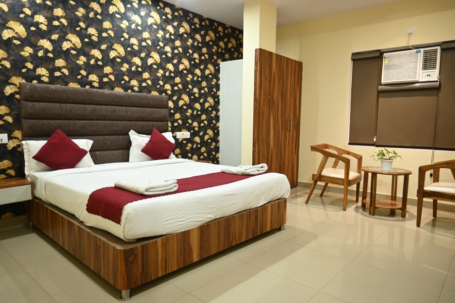 The Super Deluxe Room at Hotel Roshan in Varanasi is designed to offer guests a luxurious and comfortable experience. Each room is elegantly furnished, featuring a king-sized bed for a restful night's sleep. The spacious interiors are complemented by modern amenities, including a flat-screen TV and complimentary Wi-Fi, ensuring that all your needs are met. Large windows provide natural light and stunning views of the city. The room also includes a well-appointed work desk, making it suitable for business travelers who need to stay productive during their visit.